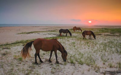 Enjoy a narrated sunset cruise from Beaufort to Shackleford Banks and back. Watch for wild horses and dolphins, with one hour on the island.