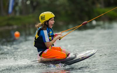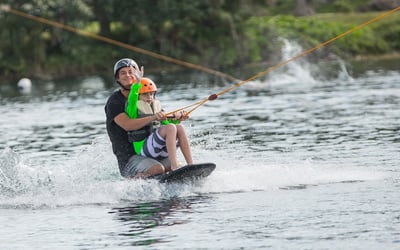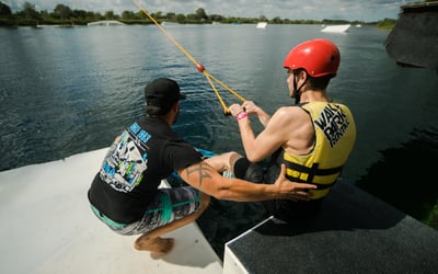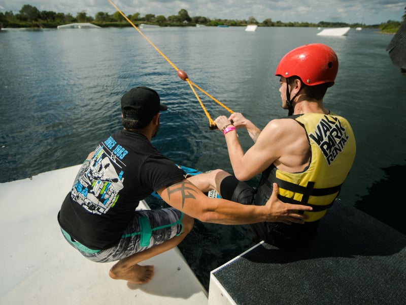 Learn to wakeboard, waterski, wakeskate, or kneeboard at a cable park with beginner-friendly speeds. Train in a relaxed setting with on-dock instructors and all gear provided.