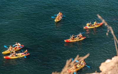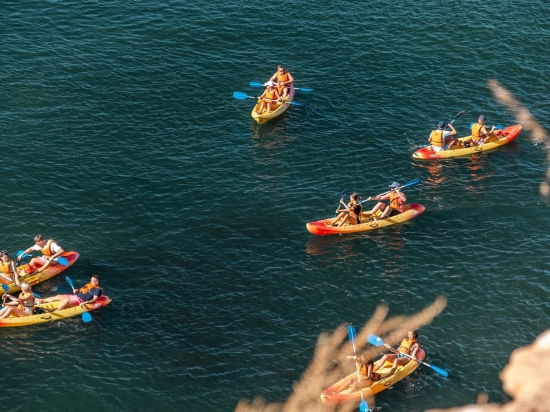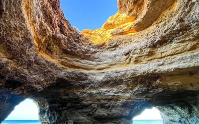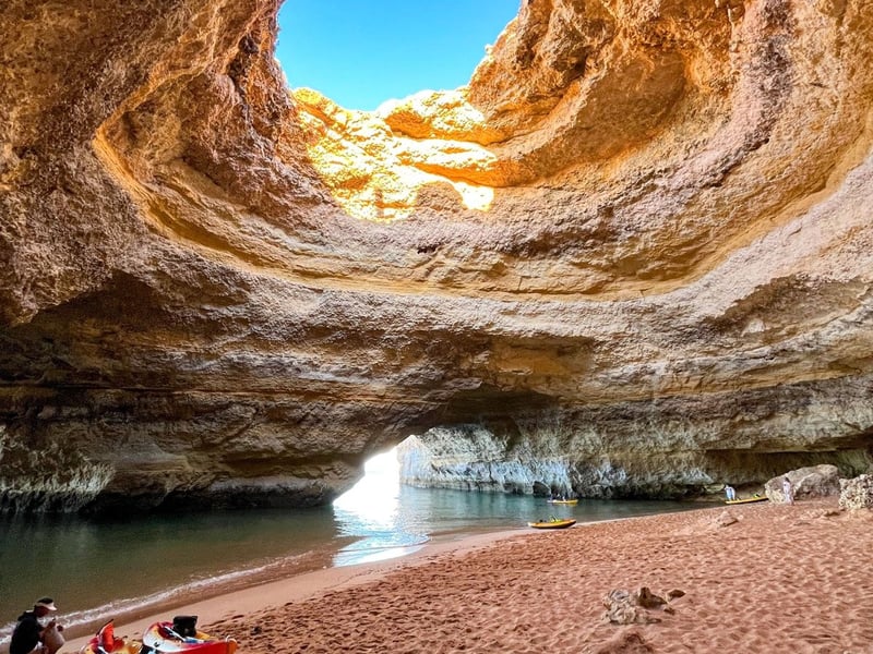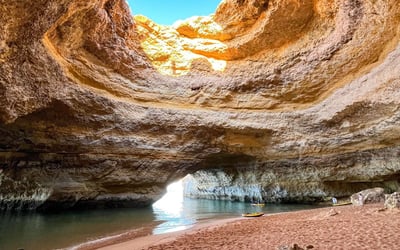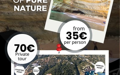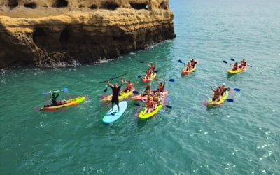 Discover the Benagil Caves by kayak on a guided tour along the Algarve coast. Paddle past wild beaches and towering limestone cliffs sculpted by the sea.
