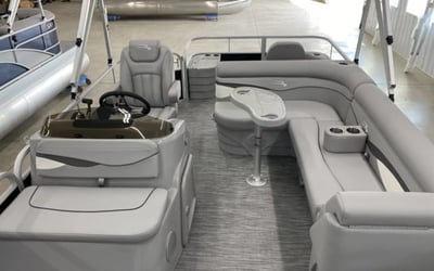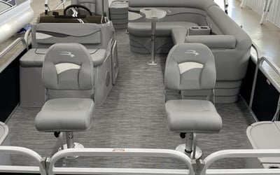 Gather your friends and family to explore Mercer’s lakes aboard a 2021 Bennington 20sfv pontoon. A quiet 60HP Mercury engine and plush seating make it ideal for cruising, fishing, and swim stops.