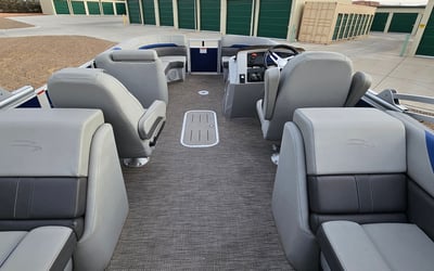 Cruise Lake Powell with up to 10 guests on a comfortable 2023 pontoon equipped with a 150 HP motor.