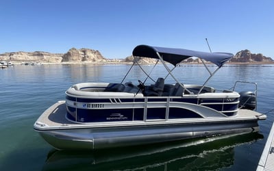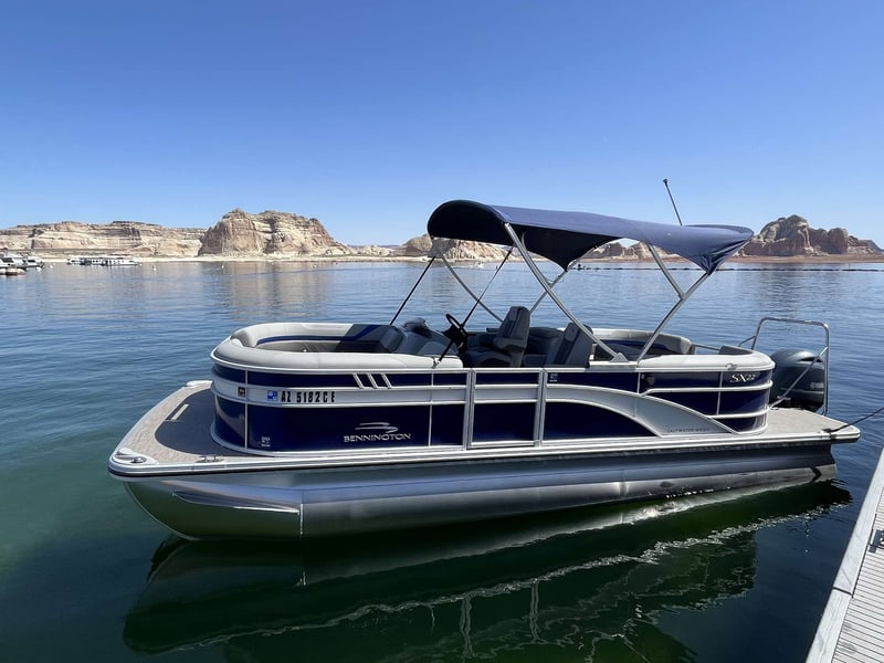 Glide across Lake Powell aboard a spacious Bennington 22-foot pontoon powered by a 150-horsepower Yamaha engine. Lounge under the Bimini top or soak up the sun while you explore hidden coves with friends or family.