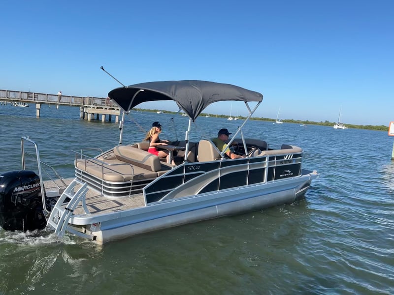 Experience a comfortable day on the water aboard a 22ft Bennington tritoon from Genung's Fish Camp in St. Augustine. Seat up to 12 guests and enjoy lounge seating and Bluetooth audio as you cruise the Intracoastal toward Matanzas Inlet.
