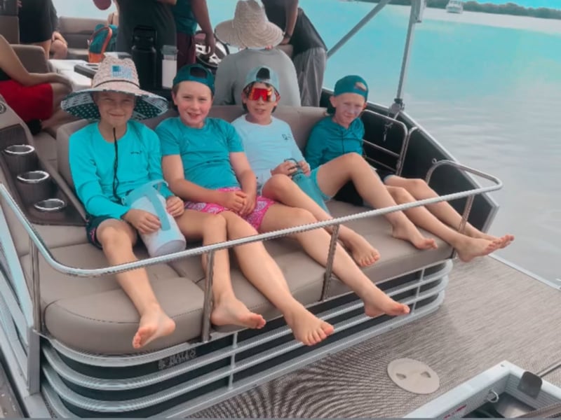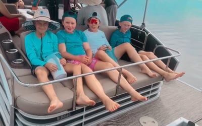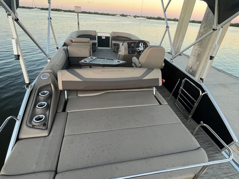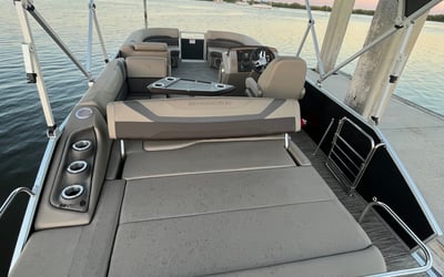 Cruise comfortably with up to 12 guests on a 22ft tritoon with Bluetooth audio