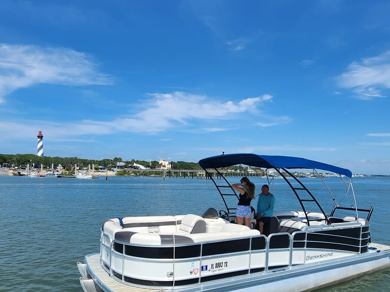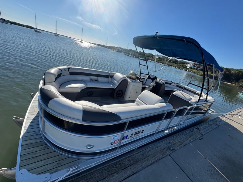 Step aboard a 25-foot Berkshire 253 RFX SuperSport tritoon designed for comfort and standout style. With room for up to 14, it’s ideal for groups and celebrations along St. Augustine’s Intracoastal.