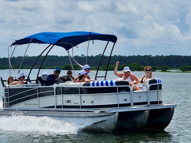 Cruise the Intracoastal on a spacious tritoon with room for up to 14, ideal for groups and celebrations.