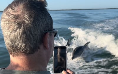 Wildlife sightings vary by season; dolphins are seen year-round.