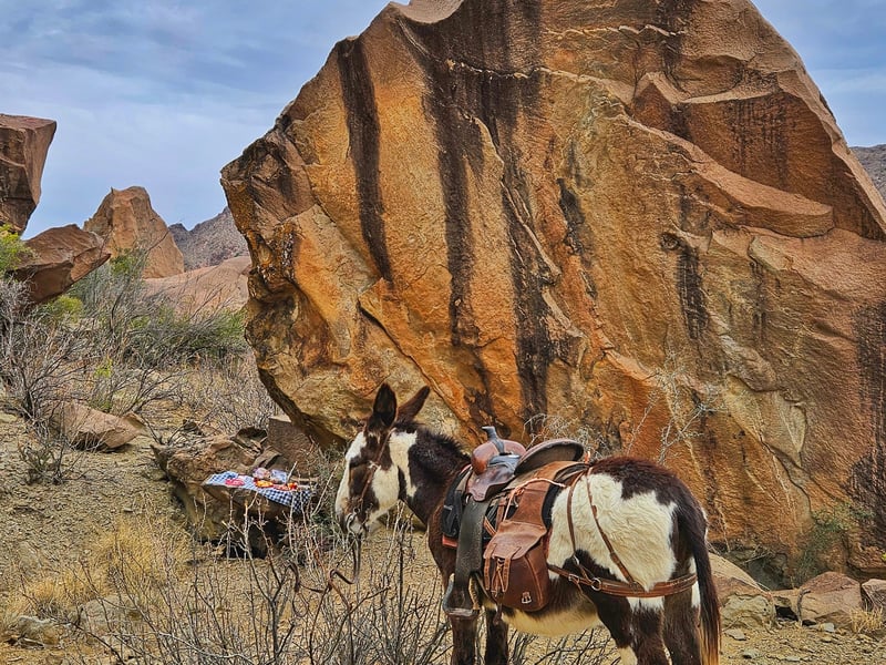Ride to Indian Head on a gentle, nose-to-tail walk and enjoy lunch in the shade with views of the Chisos Mountains. This half-day outing suits beginners and families seeking a relaxed experience.