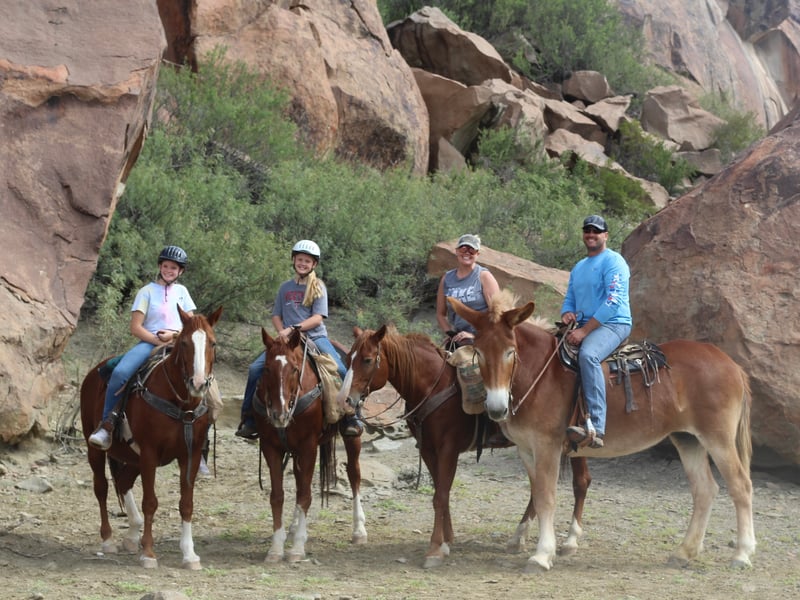 Minimum age 8; max weight 270 lbs. Wear long pants and closed-toe shoes and bring 2–3 liters of water in handheld bottles. You must be able to mount and balance unaided; shade is limited in summer except at lunch.