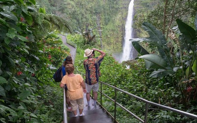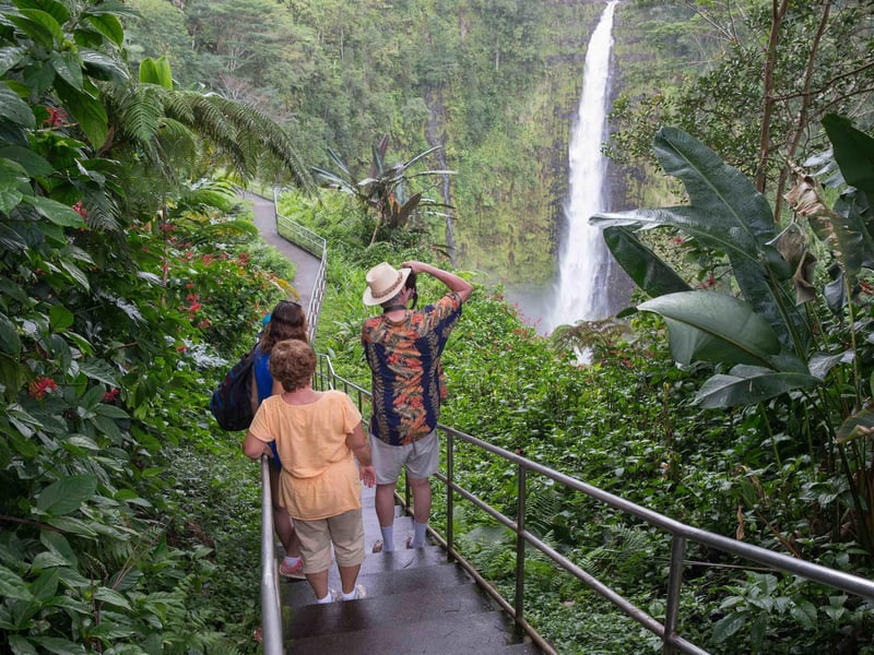 See waterfalls, Volcanoes National Park, a coffee farm, and a black-sand beach on a full-day guided loop