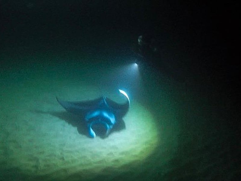 Swim alongside gentle manta rays under the Hawaiian night sky