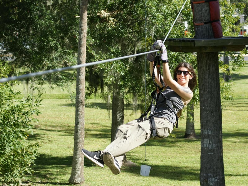 Most visitors leave thrilled with their treetop adventure, praising the enthusiastic guides who strike the right balance between keeping things safe and making the experience genuinely fun. The staff gets consistent shoutouts for being helpful and willing to answer questions, which first-timers especially appreciate. One guide, Tasheem, earned specific praise for adapting to different skill levels within the same group. The zipline views are a highlight, with some reviewers noting you can spot alligators below, adding an extra thrill to the canopy experience. The courses offer a solid challenge that appeals to various ages and abilities, with most groups spending around two hours completing both routes. A few visitors noted the facilities could use some updating, and there was one concerning incident about harness fit and staff attentiveness. Still, the overwhelming majority had positive experiences, including people tackling their fear of heights. If you're planning to visit, booking tickets ahead is recommended, and multiple reviewers suggest bringing bug spray for added comfort during your adventure.