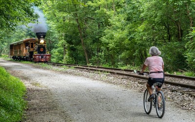 Take a one-way Bike Aboard ticket and combine a train ride with your cycling plans on the Heritage Rail Trail. Your bike rides in the restored gondola car while you relax on the southbound trip to New Freedom.