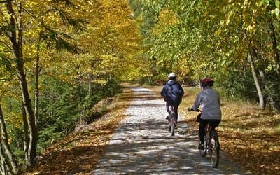 Shuttle from mile marker zero at the Intervale trailhead to the Cedar Creek trailhead at mile 16, then bike back to your vehicle. Ride through Cedar Creek valley into the Jackson River corridor with gentle downhill sections, mountain views, cliffs, and historic bridges.