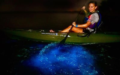 Paddle calm Florida waters to witness glowing dinoflagellates or comb jellies with experienced guides