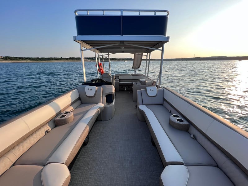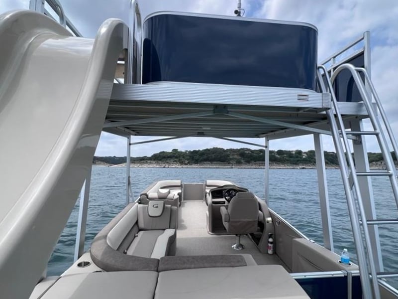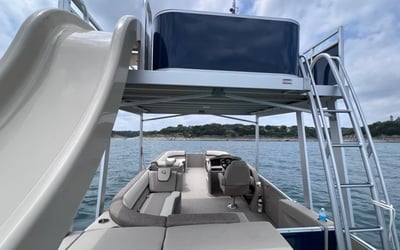 Explore Lake Travis aboard the Blue Crown double-decker pontoon with a licensed captain. Swim, slide, and relax as you visit popular coves and play your own music on Bluetooth speakers.