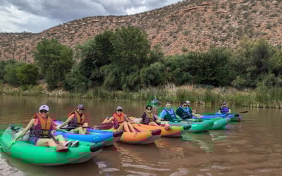 Pair a guided paddle on the Verde River with good eats. Start at The Krow, shuttle to OAC to get river ready, paddle with certified guides, then return for burgers and beer.