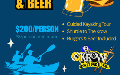 Kayak tour, Shuttle, Burgers & beer