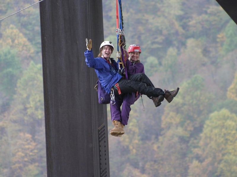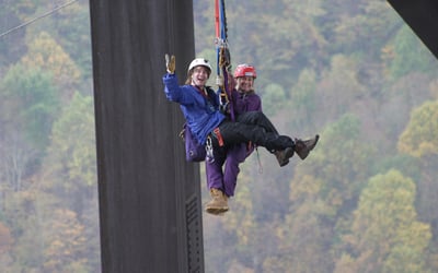 Walk the New River Gorge Bridge catwalk on Bridge Day and see the high line, rappelers, and BASE jumpers
