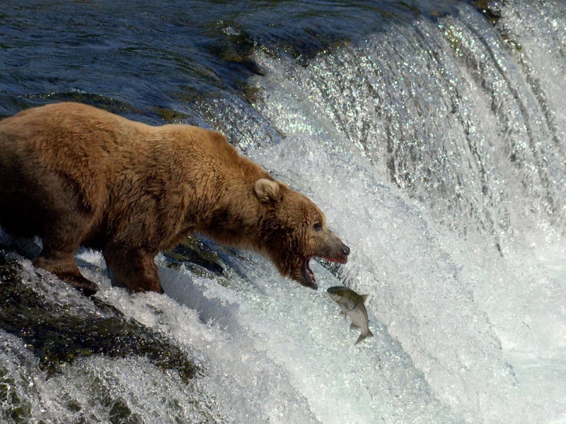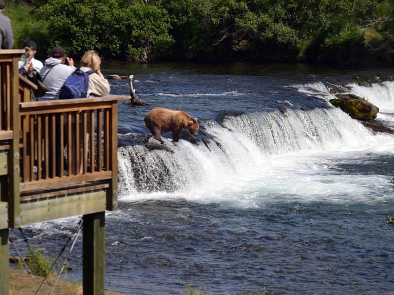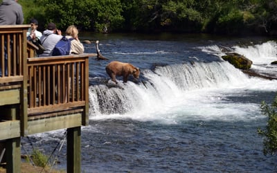 See brown bears in their natural habitat with three hours on the Brooks Falls viewing platforms