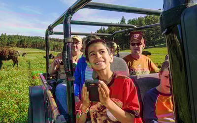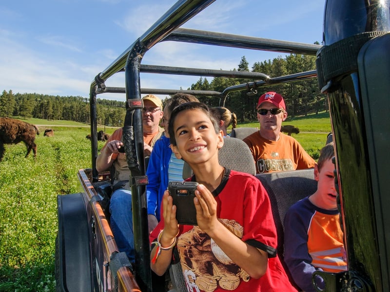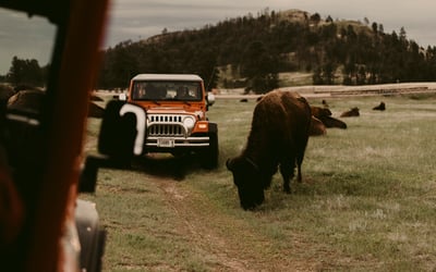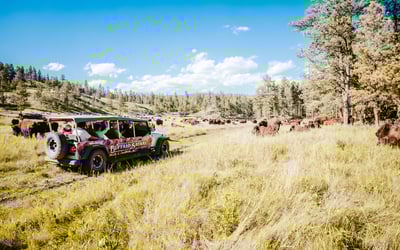 Explore Custer State Park’s Wildlife Loop in a custom open‑air Jeep. Your guide helps you spot bison, pronghorn, and elk with access to interior roads.