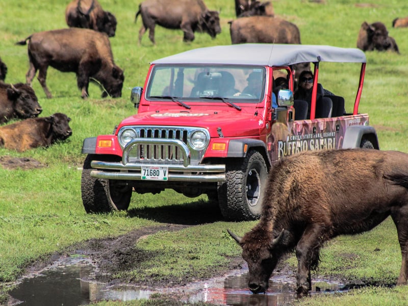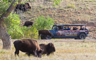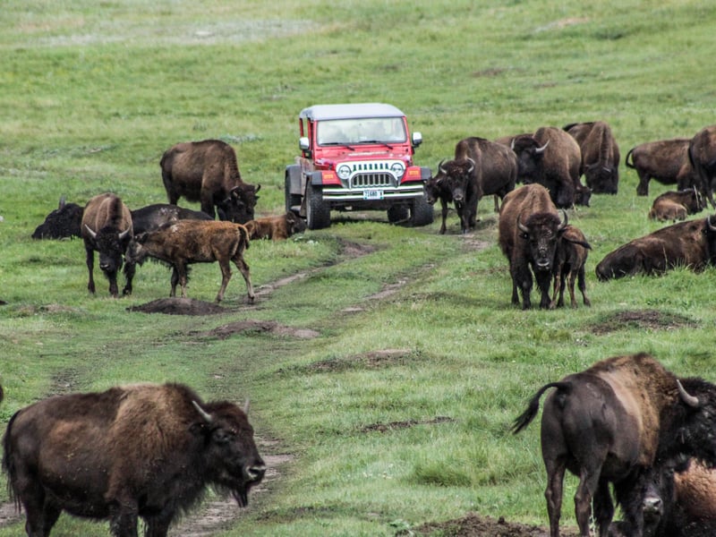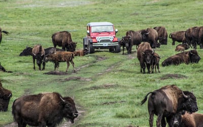Spot bison and wildlife with a guide on open-air Jeeps with access to interior park roads