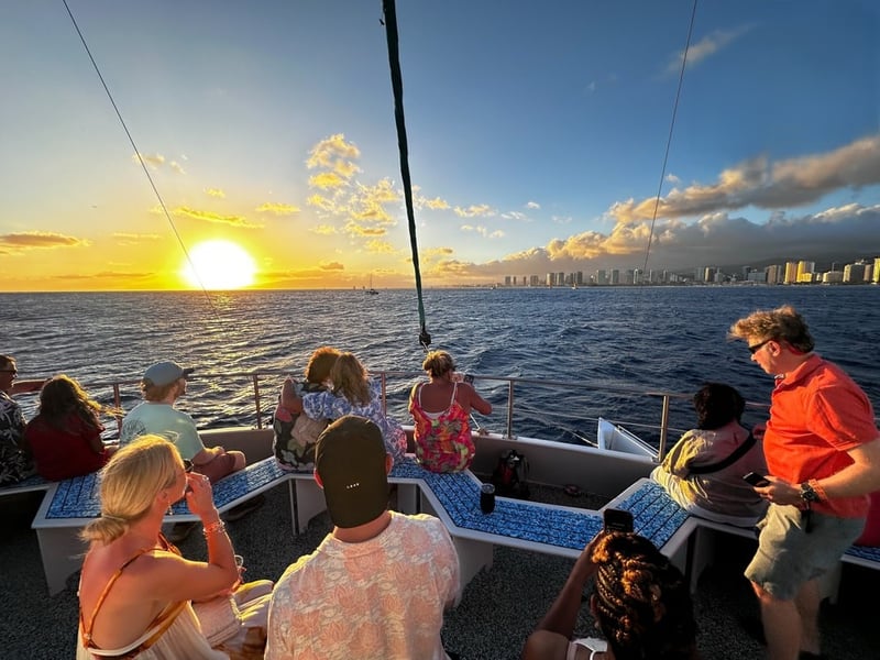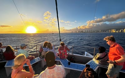 Sail Waikiki at sunset with live music or a DJ on a BYOB catamaran with appetizers