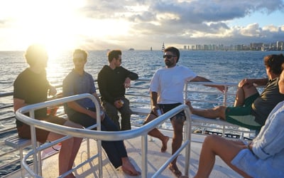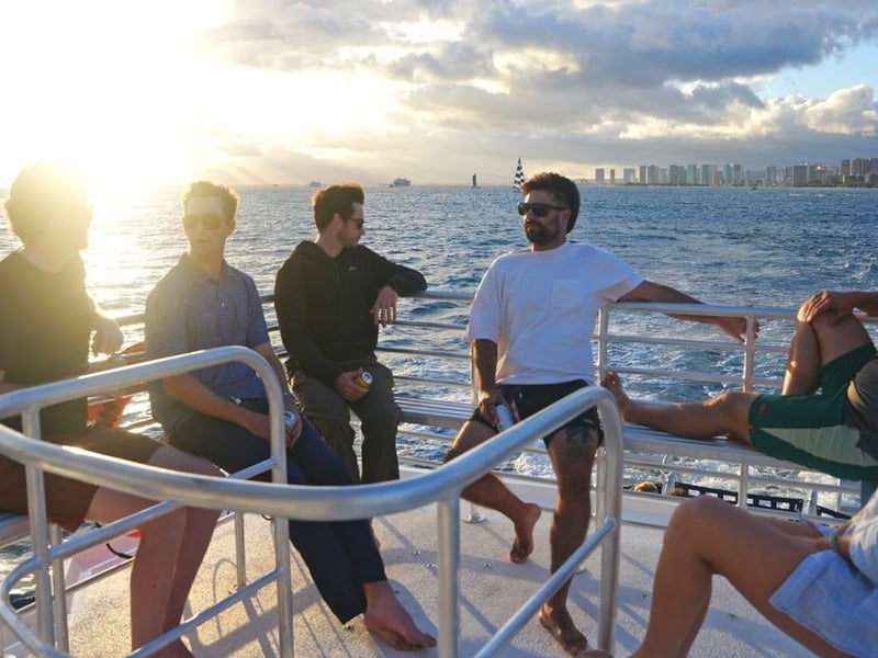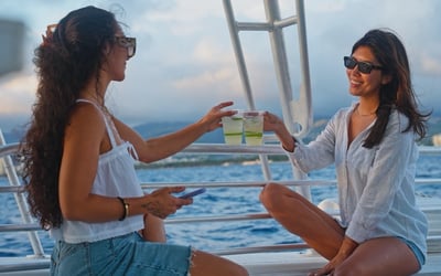 Unwind on a 90-minute BYOB sunset cruise with Waikiki and Diamond Head views aboard a spacious 50' boat