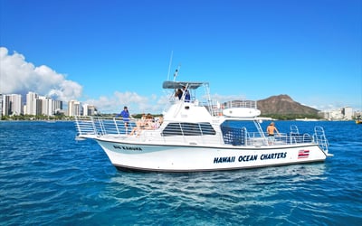 Take in Honolulu’s coastline on a 90-minute BYOB sunset cruise aboard a spacious 50’ power boat. Enjoy Waikiki and Diamond Head views while you relax and watch for turtles, dolphins, and seasonal whales.