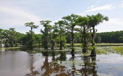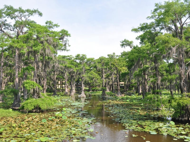 Explore Caddo Lake's cypress-lined waterways and spot birds and alligators