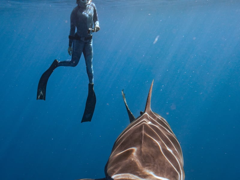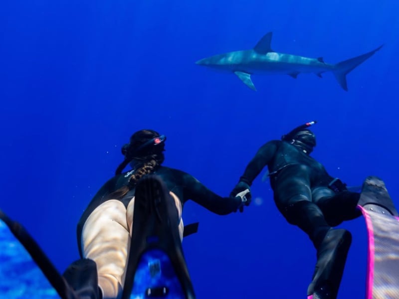 Swim alongside sharks in open water with trained safety divers and learn about their behavior