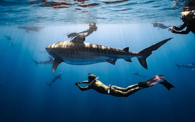 Head three miles off Oahu's North Shore to swim alongside sharks in clear blue water. With a trained safety diver, learn about shark biology and behavior as you snorkel or free dive cageless.
