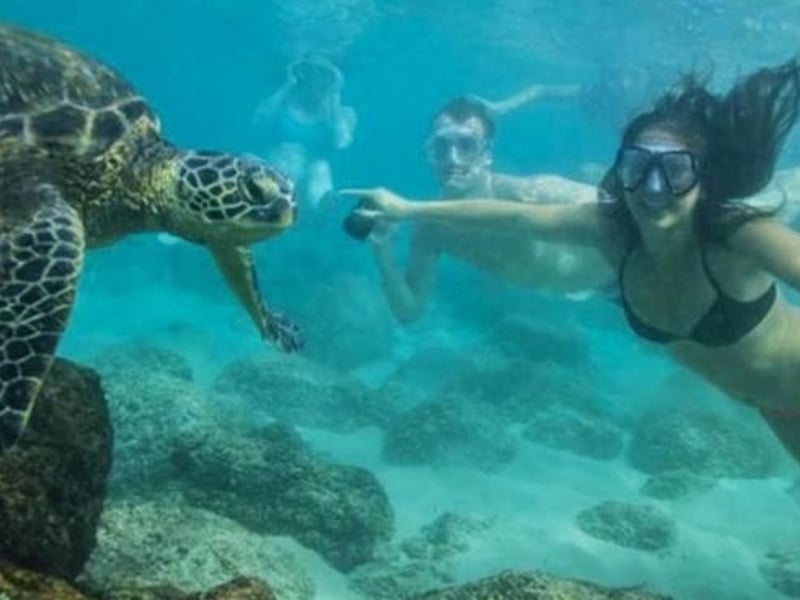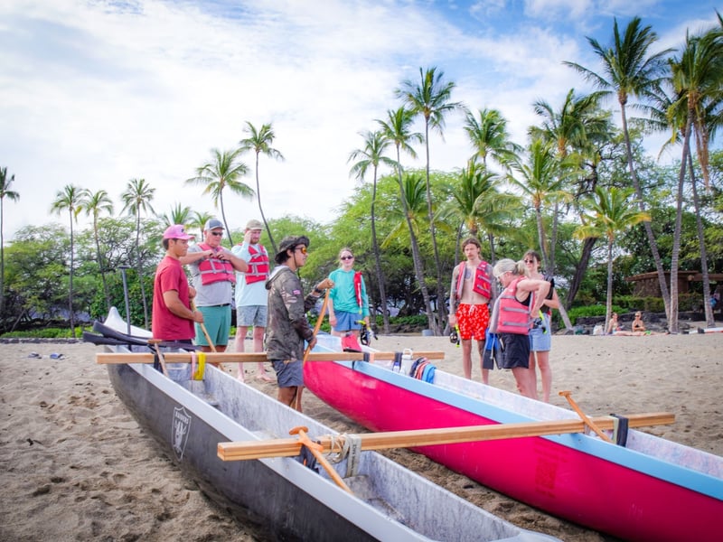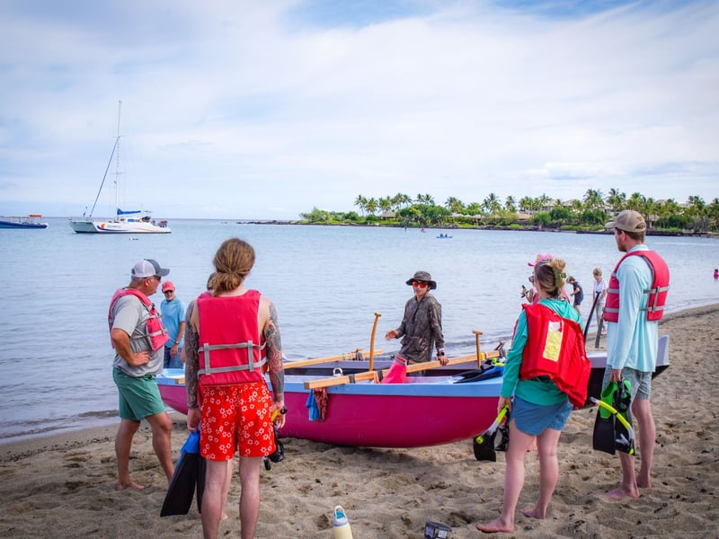 Embark on a guided paddle from Anaehoʻomalu Bay to Turtle Alley in a traditional canoe, then snorkel among colorful reef fish and sea turtles with lifeguard-certified guides.