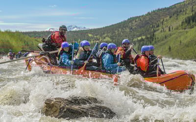 Ride 11 miles of the glacial Nenana River through Denali's canyon, surging over rapids like Razorback and Coffee Grinder. Choose to paddle with the crew or sit back in an oar boat while expert guides steer.