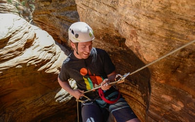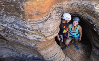 Private tours for guests 5 years and older. Expect strenuous uphill hiking and multiple rappels up to 100 feet. Shallow wading may be required after storms.