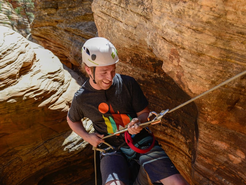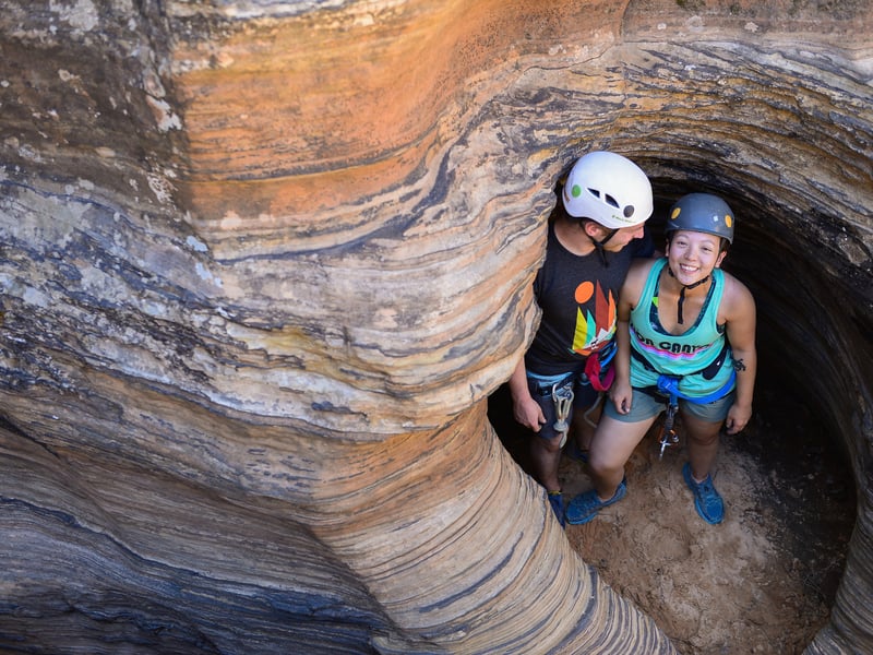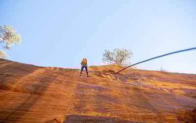 Explore Middle Water Canyon on a guided canyoneering trip just south of Zion. Descend multiple rappels, hike varied terrain, and learn essential rope skills in a private experience.