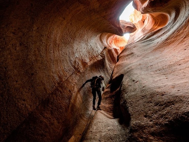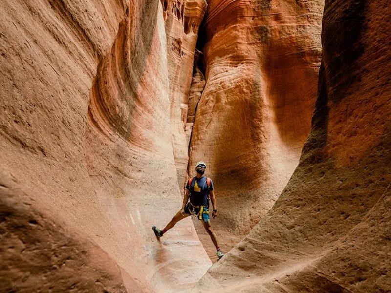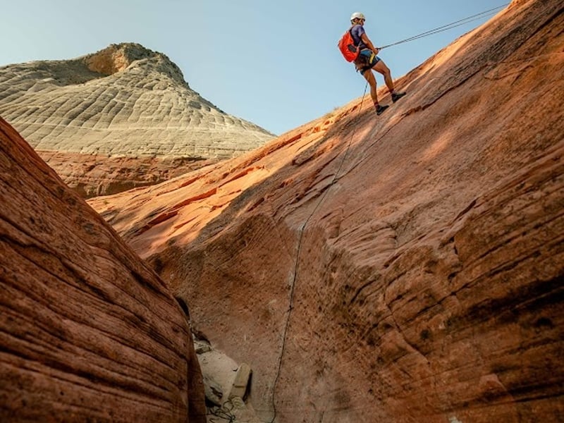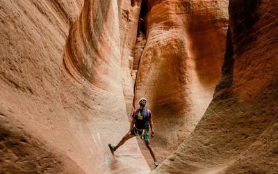 Experience a private canyoneering adventure in Ladder Canyon near Kanab. Navigate a scenic slot with beginner-friendly rappels and red rock walls.