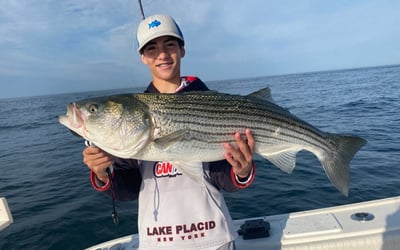 Chase striped bass on Cape Cod during a flexible 4.5-hour private charter for up to six guests