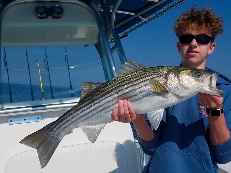 I took my niece out - it was her first fishing experience. Jim was a great teacher; patient and lots of fun. Enjoyed a beautiful afternoon on the water catching Stripers, Bluefish and Bonito. Top notch boat and a great guide. I would highly recommend a trip with Blue Bandit!