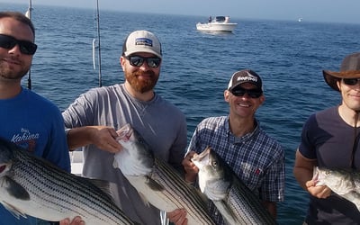 Captain Jim has built something special here, earning consistent praise from everyone who steps aboard his boat. Reviews highlight his genuine warmth and teaching ability – he makes first-timers feel comfortable while keeping experienced anglers engaged. Groups love how he adapts to different skill levels and physical needs, with one wheelchair user specifically noting his thoughtful accommodations. The man clearly knows Cape Cod waters inside and out, regularly putting guests on stripers, bluefish, and bonito even when conditions aren't ideal. What sets Jim apart is his approach to hosting. He takes time to explain techniques rather than just doing the fishing for you, cleans your catch on the way back, and even shares cooking tips complete with grill times. Families mention multigenerational trips where everyone from kids to grandparents had success, and repeat customers keep coming back year after year. The immaculate boat and Jim's marine engineering background add reassurance, while his conversation skills and humor make the hours fly by. Expect early mornings that pay off quickly – many report fish on the line within minutes of leaving the dock.