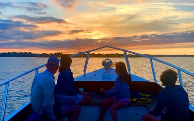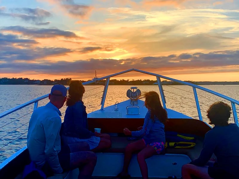 Watch Cape Cod's vibrant sunset while enjoying onboard cocktails and treats