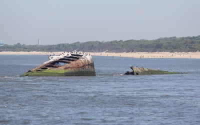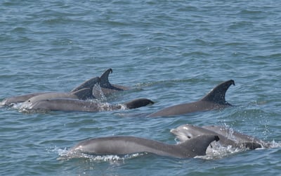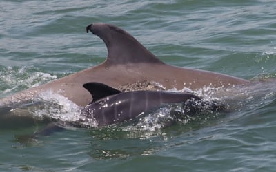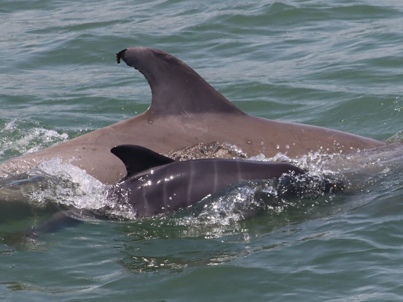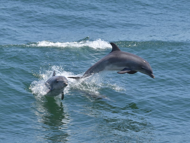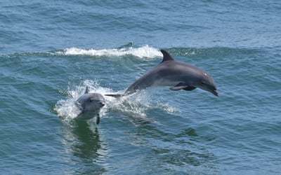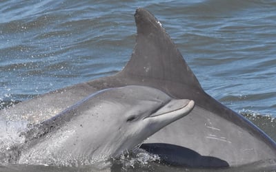 Spot bottlenose dolphins and coastal birds on a guided 2-hour cruise with marine biologists