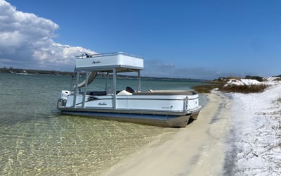Settle into a captained, all-inclusive pontoon for a relaxed day on Destin Harbor, Choctawhatchee Bay, and Crab Island. Enjoy ample seating, dual decks, an onboard slide, and included water toys.
