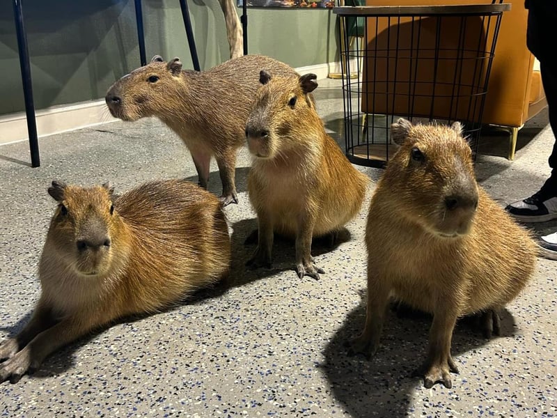 Visitors consistently rave about the hands-on animal encounters here, with the capybaras stealing hearts left and right. Staff members like Ashley, Dakota, and Simone get enthusiastic shoutouts for being knowledgeable and genuinely passionate about the animals. The facility maintains high cleanliness standards, and guests appreciate how well-cared-for all the creatures appear. Beyond the star capybaras, you'll also meet lionhead bunnies, ferrets, and guinea pigs during the fuller experience packages. The intimate group sizes create meaningful interactions where you can feed and pet the animals without feeling rushed. Many visitors mention booking the "Capys and more" option to maximize their time with all the residents. One helpful tip: arrive about 30 minutes early to enjoy the animals in the waiting area, and expect some parking challenges since the lot fills quickly. Just note this isn't an actual café serving food or drinks despite the name. The experience runs about 30 minutes and appeals equally to kids and adults, with several guests describing it as dream-come-true territory for animal lovers.