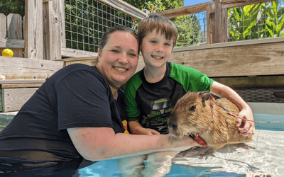 Meet a baby capybara in a shallow splash pool and observe its natural swimming skills during this 45-minute session.