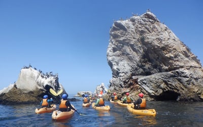Explore spectacular coastal caves and arches on a guided kayak adventure. Learn paddling skills and navigate grottoes, kelp forests, and protected coves.