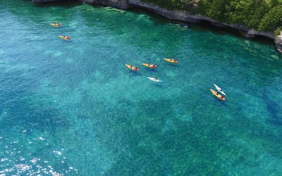 Paddle crystal-clear Lake Michigan waters to limestone caves with an expert guide