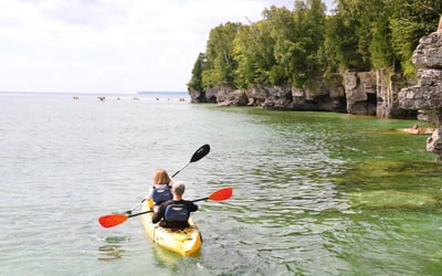 Paddle along Lake Michigan's rugged shore to explore hidden caves and coves with expert guides.