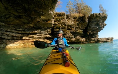Explore Door County's sea caves, dunes, and a shipwreck on a 3-hour kayak adventure.