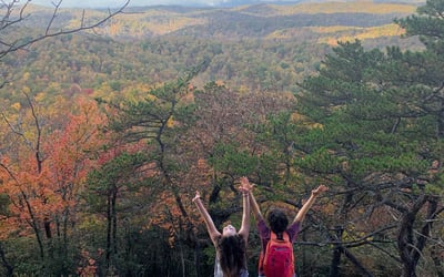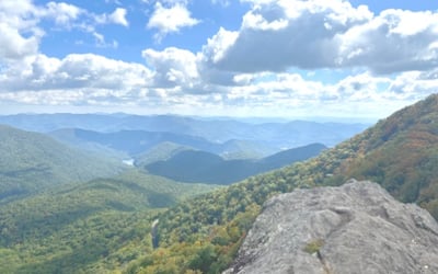 Hike to Cedar Rock Summit on a 5-mile round trip with 1,600 feet of elevation gain. Follow a forested trail and tackle easy rock scrambles with rope assistance to reach postcard views.